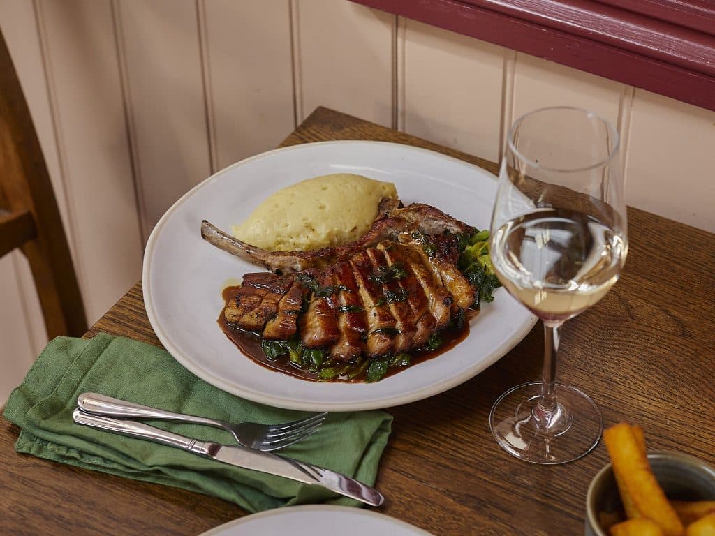 The Pork Tomahawk returns this season too, pan-fried and served with buttered spring greens, silky mousseline and a pork and marjoram jus.